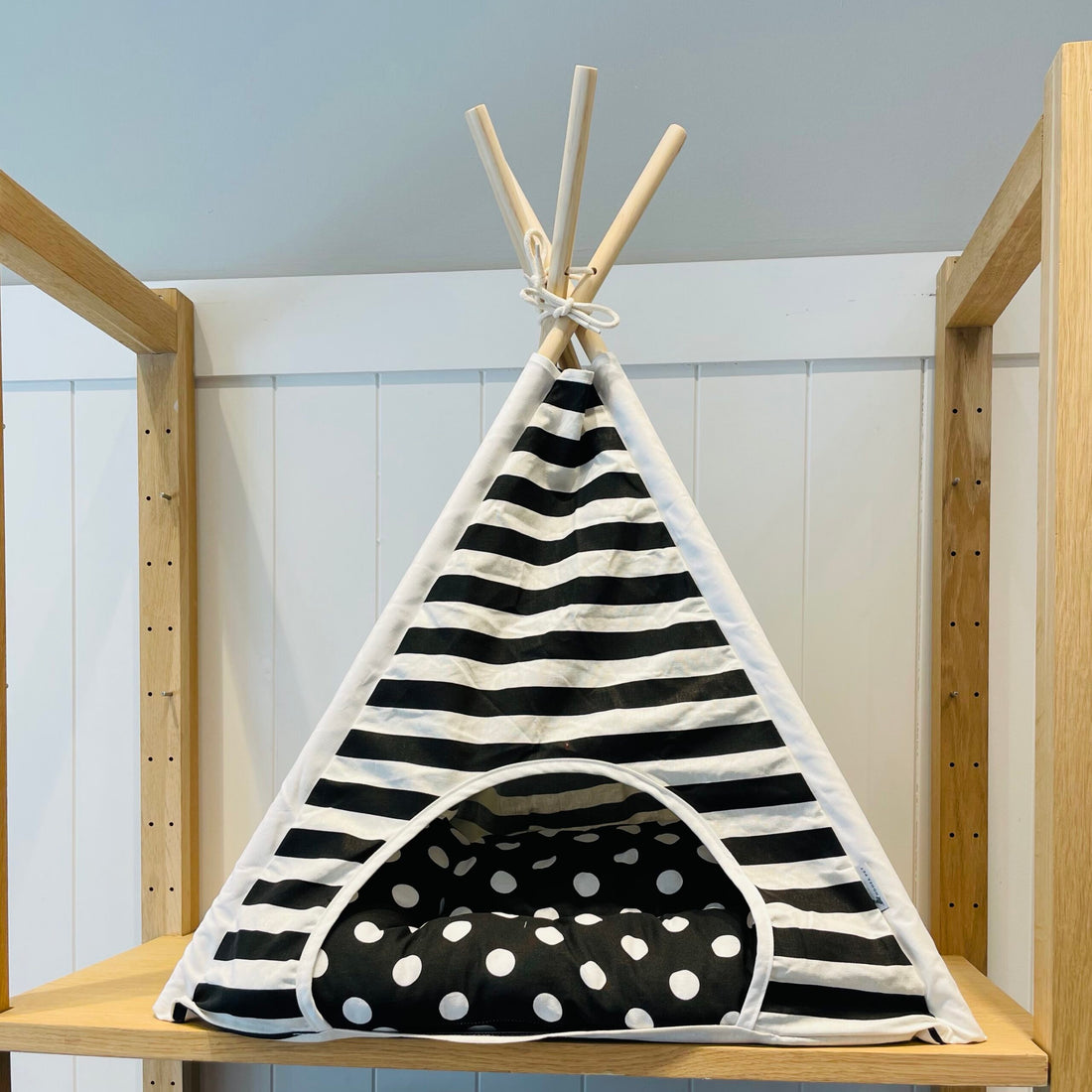 Teepee Dog Bed - Black Stripe Polka Dot