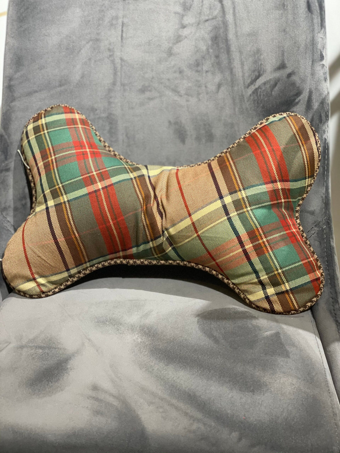 Green Plaid Bone Pillow