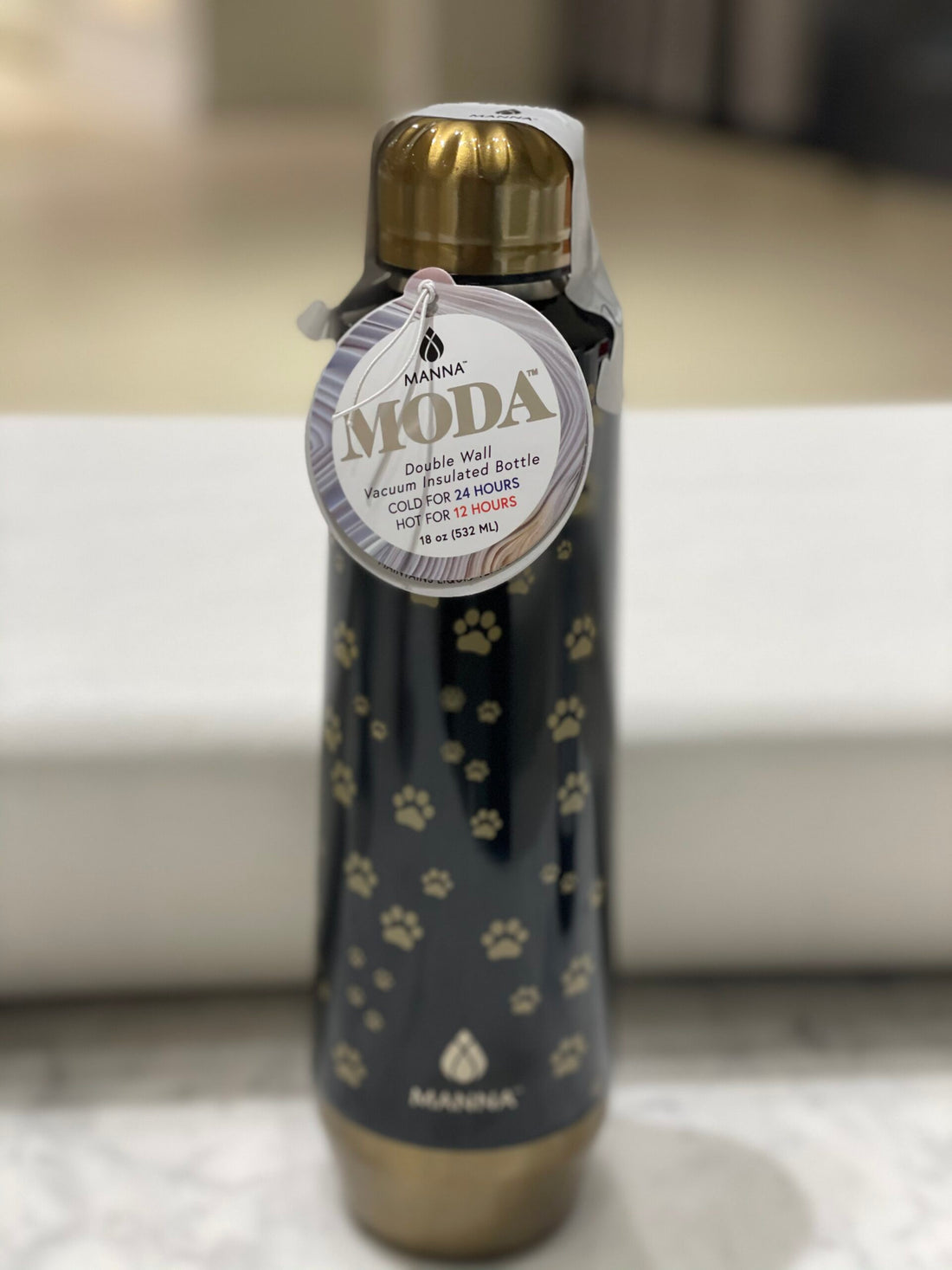 Water Bottle Manna 18oz - Black/Gold Paw